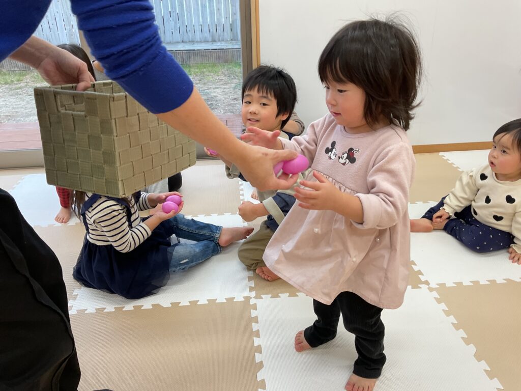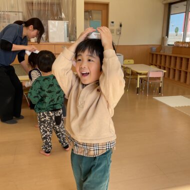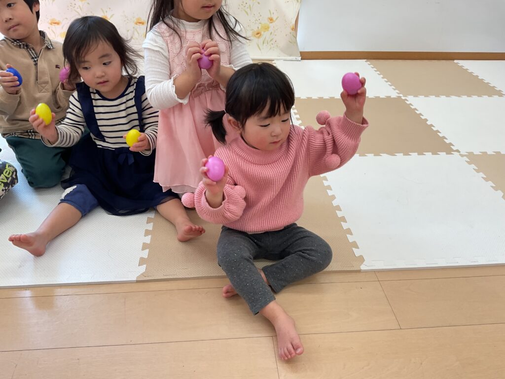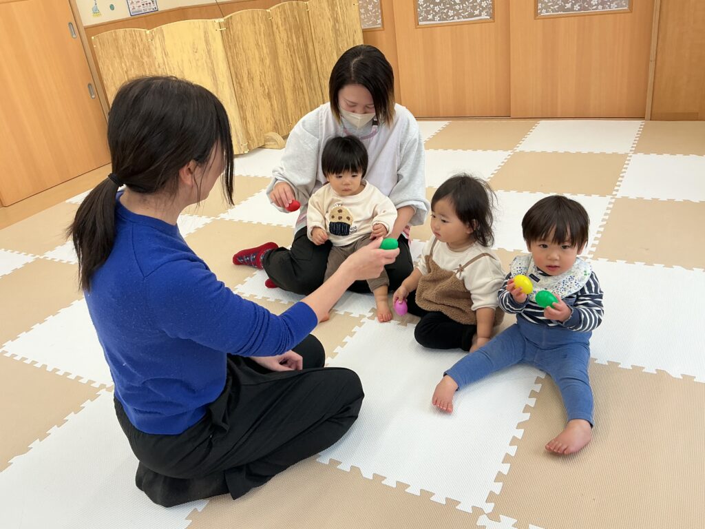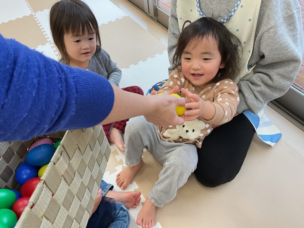 大きな雪玉を頭にのせてバランスをとったり、ふわふわのオーガンジーにのせて高く持ち上げたりと、体をたくさん動かしながら笑顔いっぱいで取り組んでいました✨
