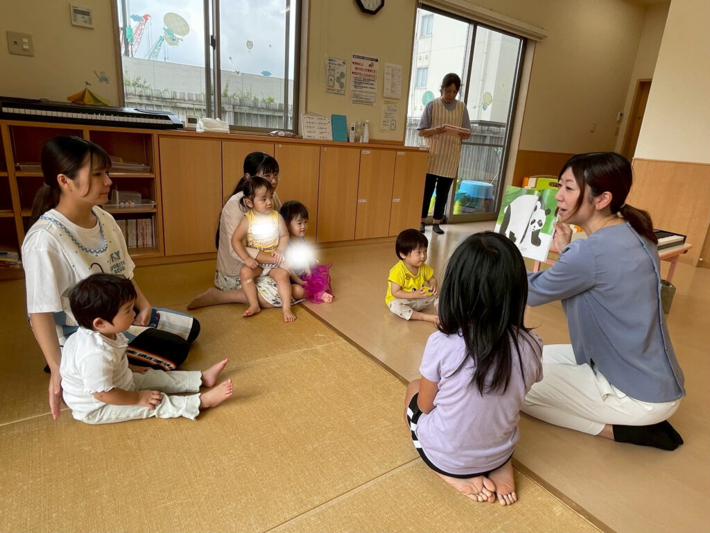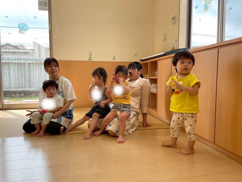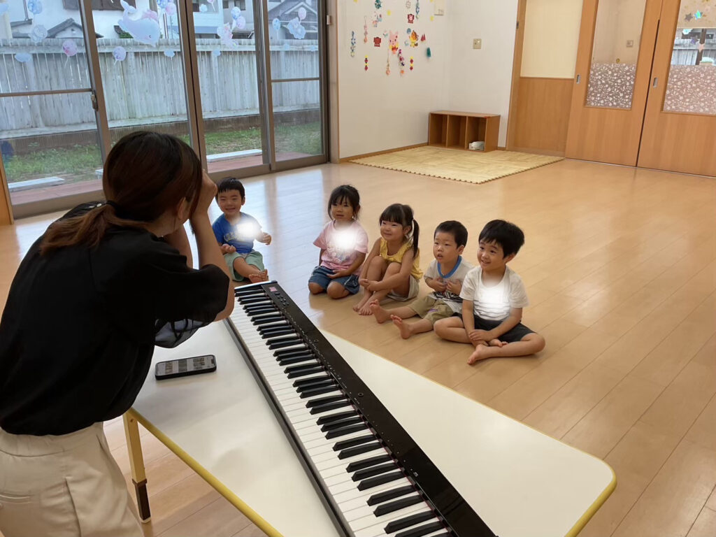 初めは不思議そうにしていた子も、先生の動きや歌声に引き込まれるように自然と体を動かし、笑顔がたくさん見られました🌸「もう一回!」と意欲的に声を出す姿もあり、楽しみながら英語や音楽に親しむ時間となっています❤️🔥