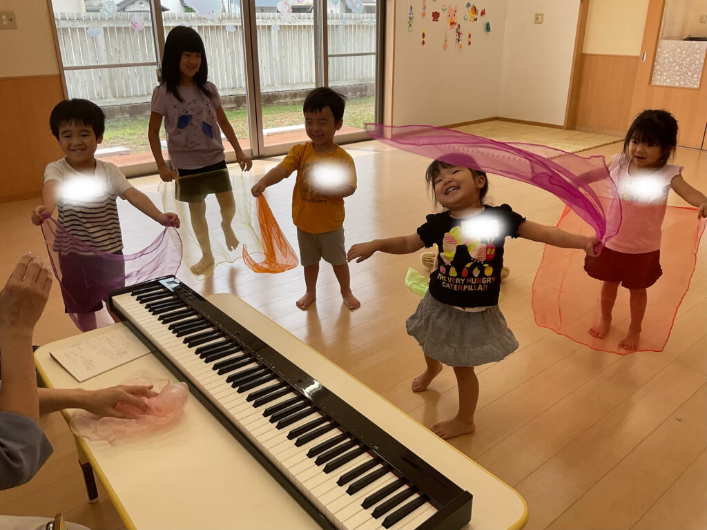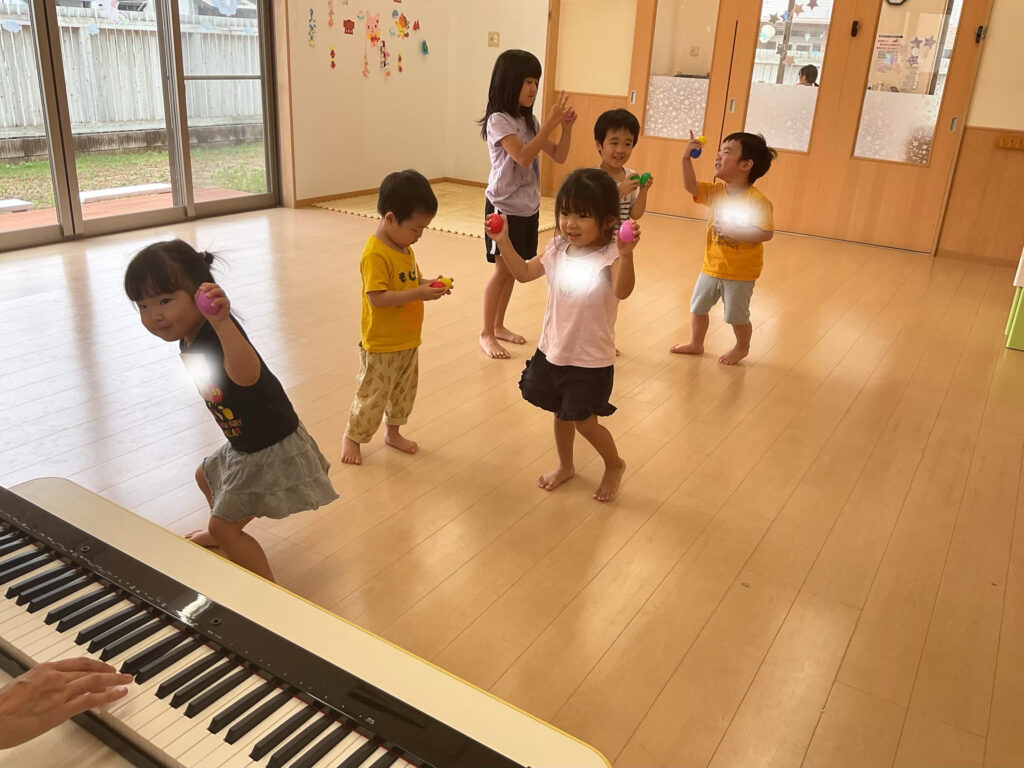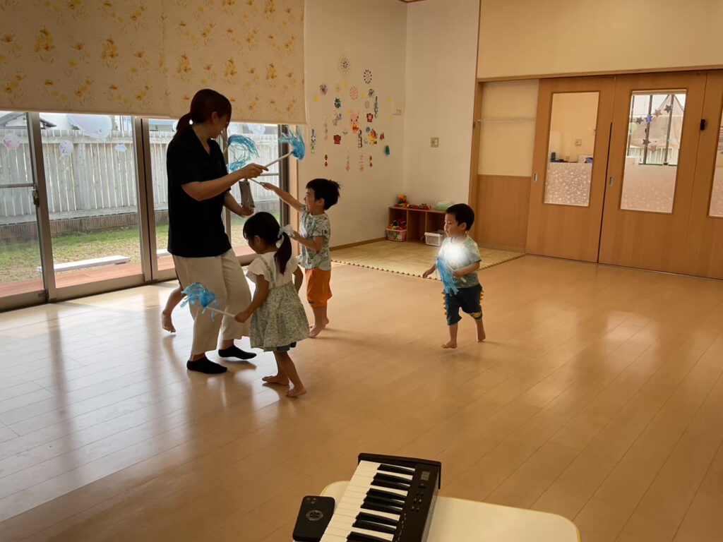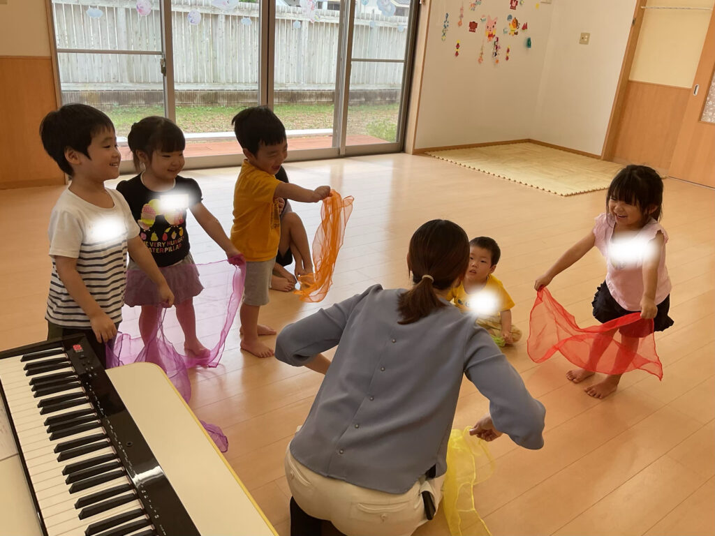 外部から講師の方が来てくださり、音楽に合わせて体を動かしたり、英語のリズムに触れたりしながら、子どもたちもとても楽しんでいます😊🎶
