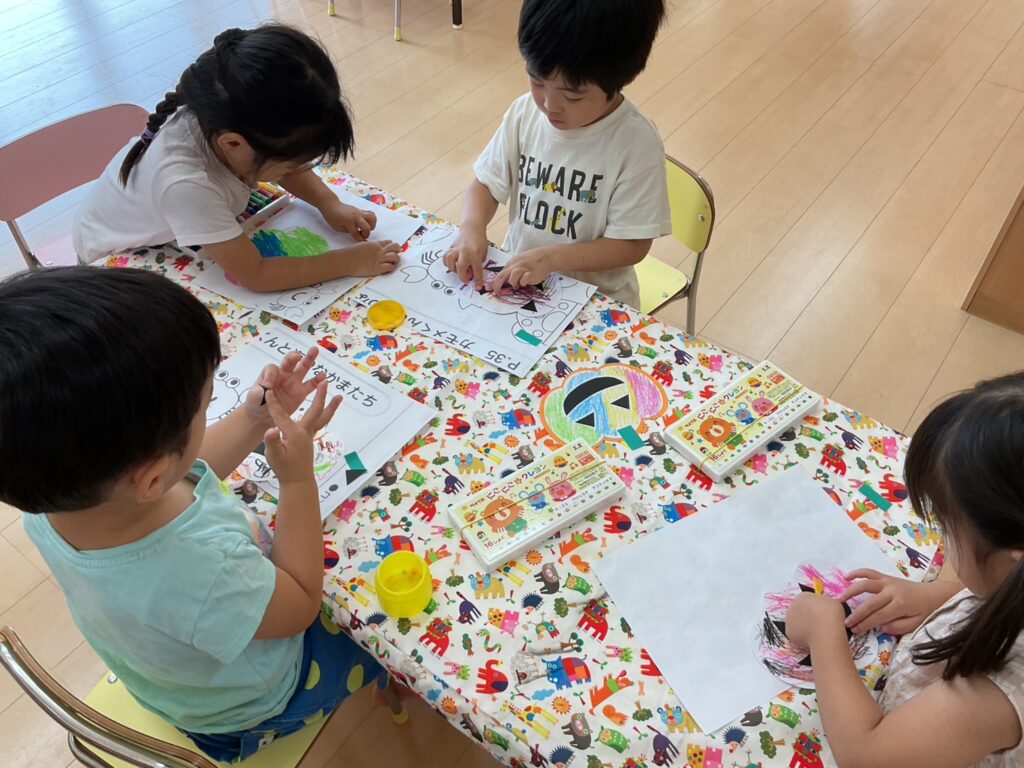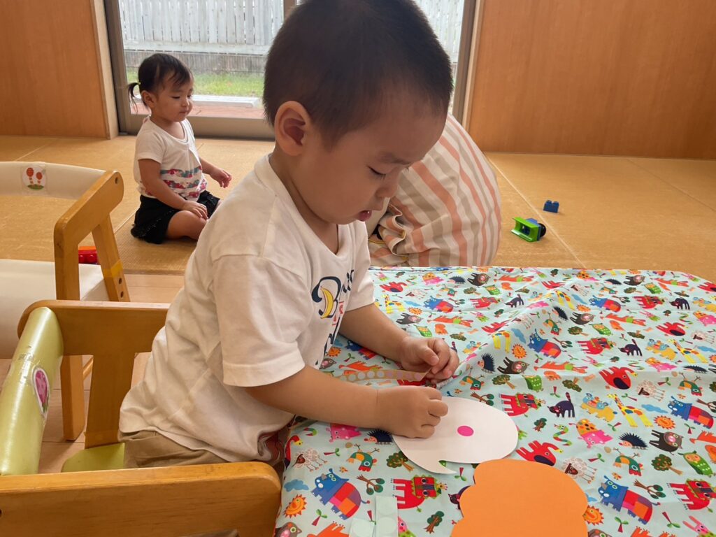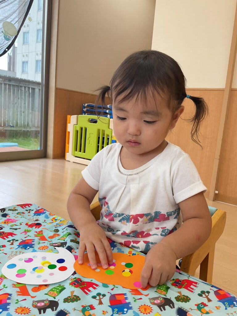 かぼちゃの形の画用紙にシールを貼ったり🤏色塗りしたりと🖌️