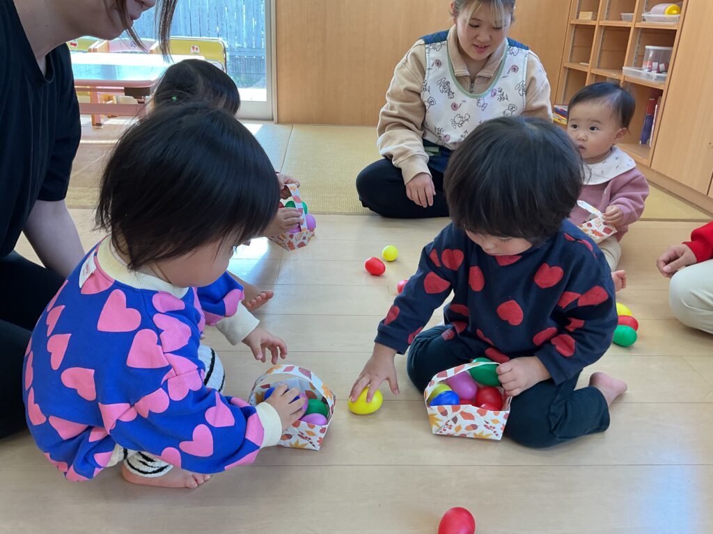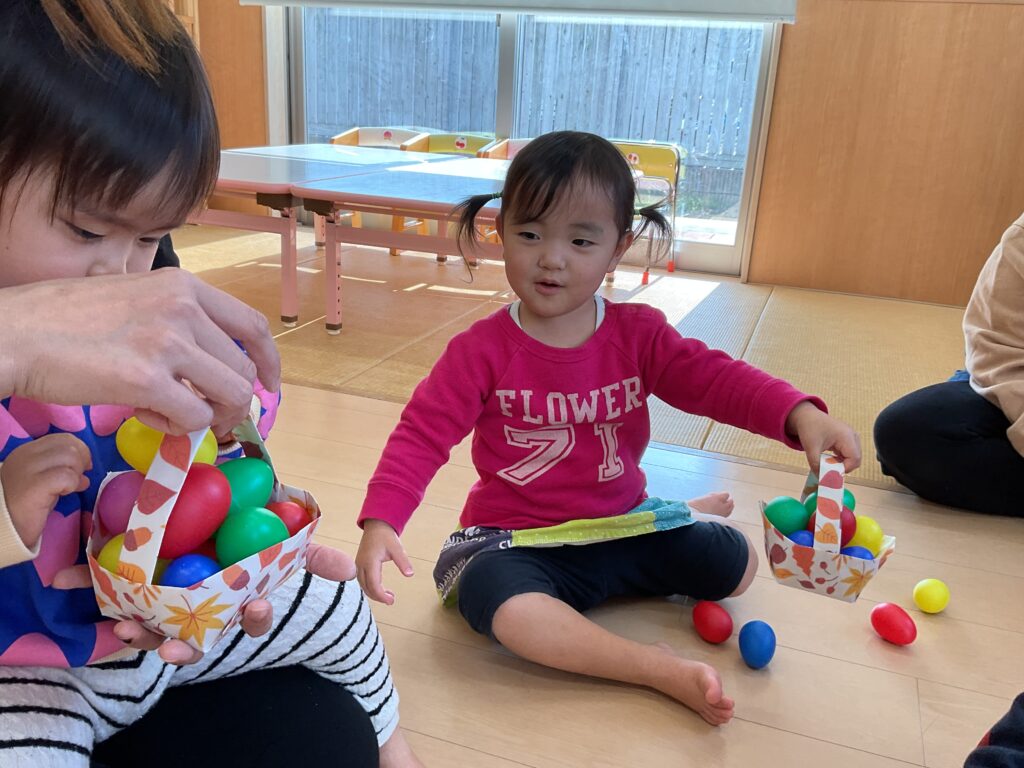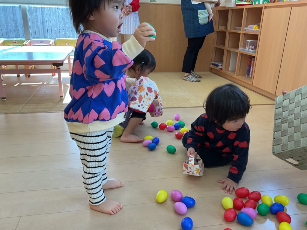 バッグの中にはカラーエッグをたくさん入れて、音を鳴らしながら楽しく遊んでいました💓