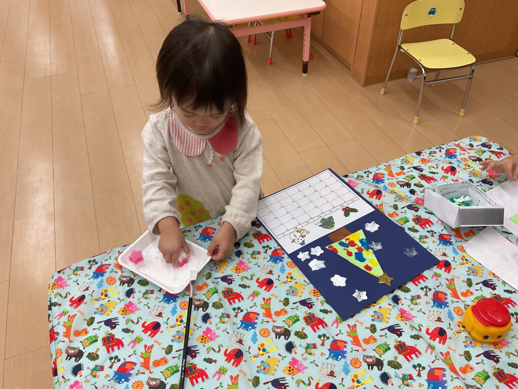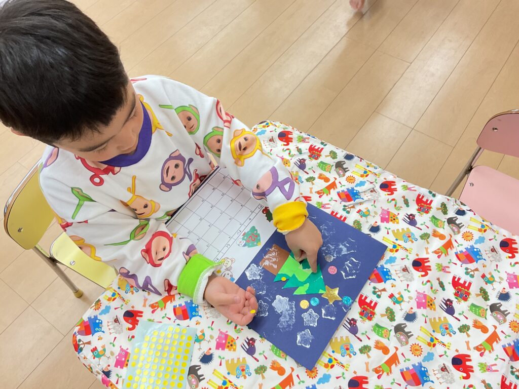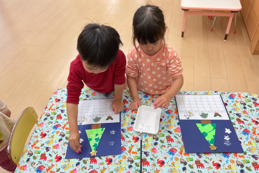 今回はクリスマスツリーのカレンダーを、年齢別に子どもたちの発達に合わせて作りました✨