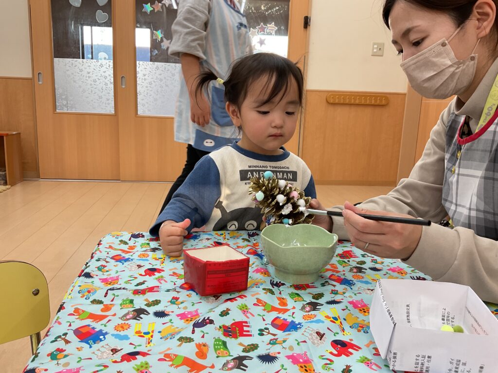 Post Share Hatena Pocket RSS feedly Pin it 記事のタイトルとURLをコピーする もうすぐクリスマス🎄園では、クリスマスに向けてリースとツリー作りを楽しみました✨ クリスマスリースは、マカロニを子どもたちが思い思いに貼り付け、仕上げにカラースプレーで色付けをしました🎶指先を使いながら、夢中になって取り組む姿が見られました🥺 クリスマスツリーは、大きな松ぼっくりにビーズやポンポンを飾り付けしました🎄「ここにつけてようかな?」と考えながら、一つひとつ丁寧に装飾し、世界に一つだけの素敵なツリーが完成しました💕 クリスマスツリー🎄 前の記事 クリスマス会🎅🎄 次の記事