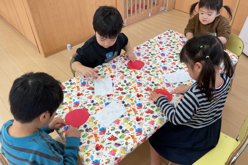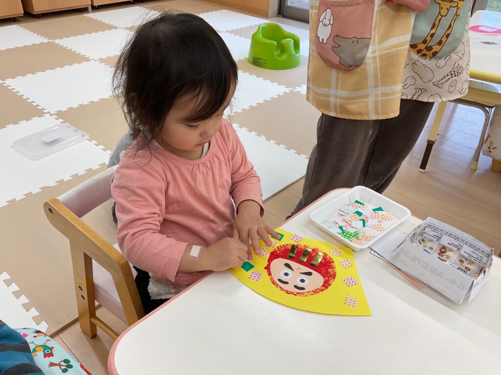 大きいクラスのお友達は、ダルマの顔を一人ひとり丁寧に描き、表情豊かなだるまに仕上げてくれました☘️